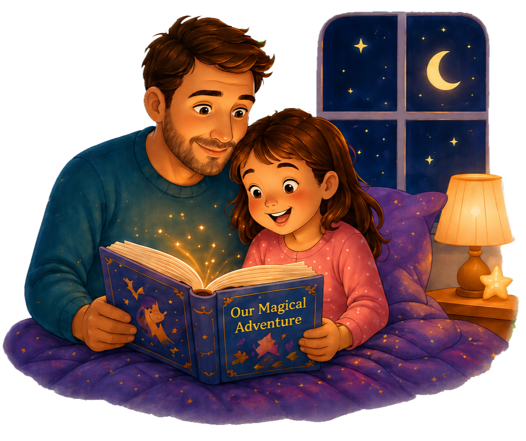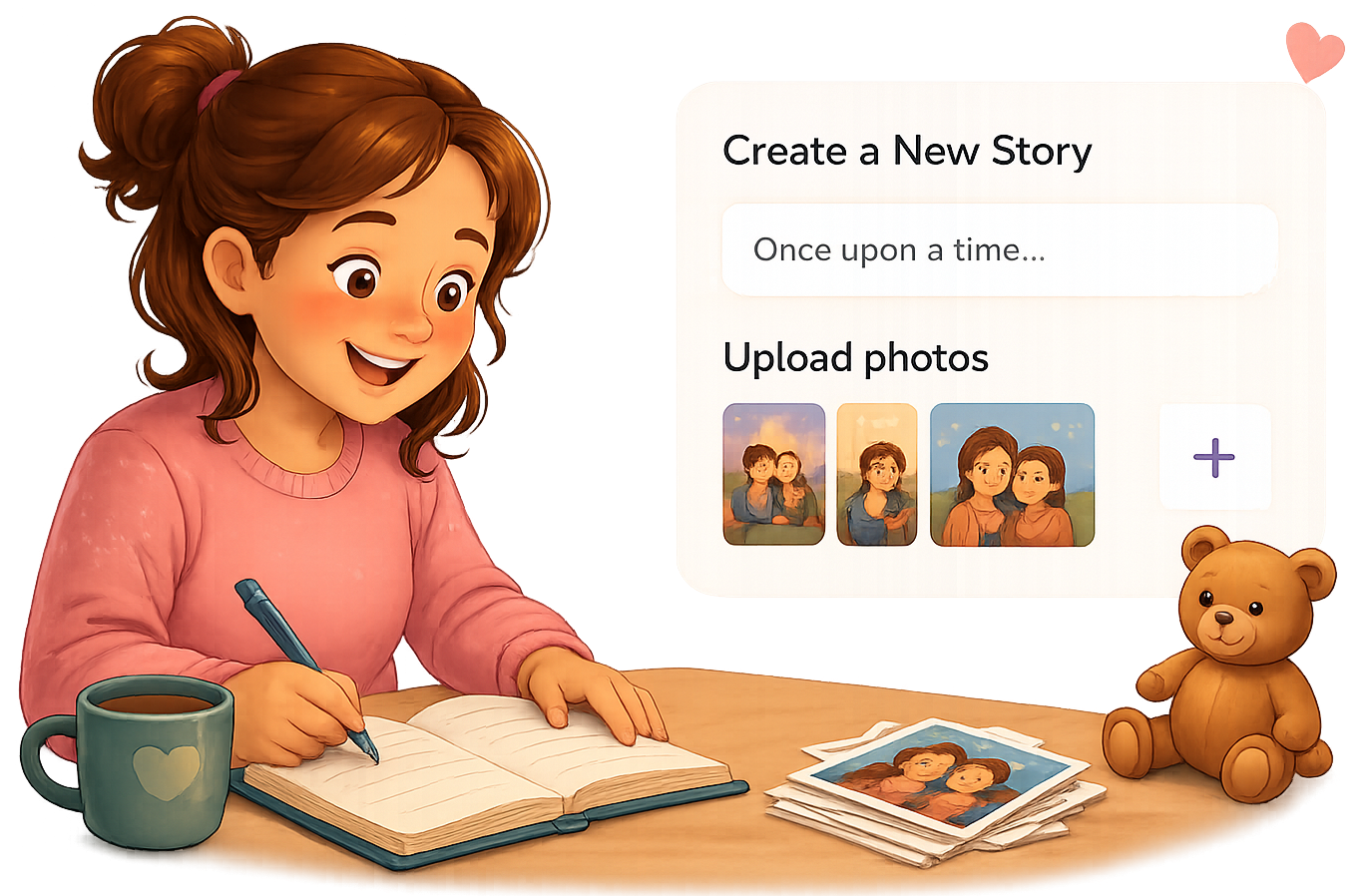 Our AI weaves your words and memories into a personalized story, just for your child.